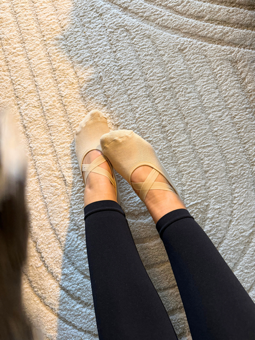 Un tricot confortable et respirant qui garde vos pieds au chaud sans les faire surchauffer — doux pour la peau et parfait pour les studios froids.